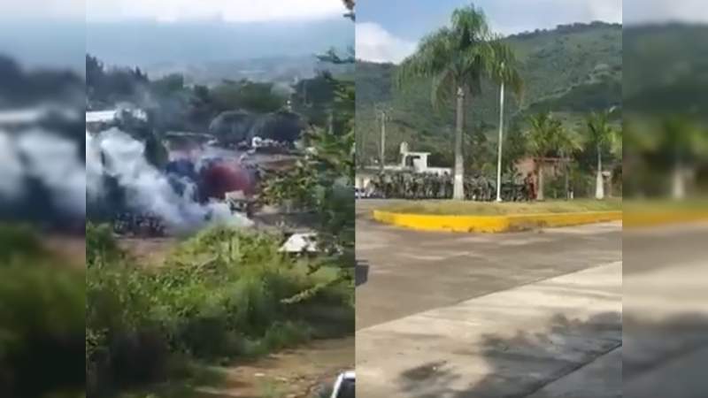 En videos se observa que los soldados desalojan con gases lacrimógenos a los manifestantes que exigían al Ejército intervenir en la lucha contra el crimen organizado, pues aseveran que debido a los delincuentes están en un cerco que los tiene atrapados en su propio pueblo sin acceso a alimentos, servicios de salud ni de limpieza, así como carencia de gasolina y otros insumos básicos.