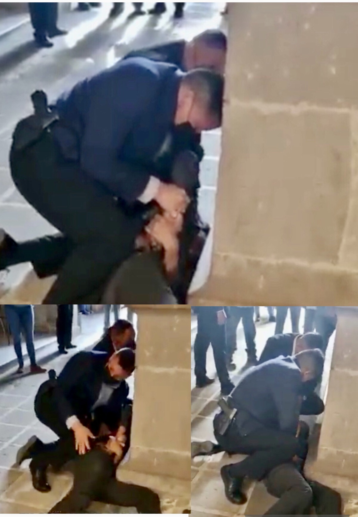 En redes sociales circula un video en el que se advierte a portentosos guardias de seguridad someter a un varón.