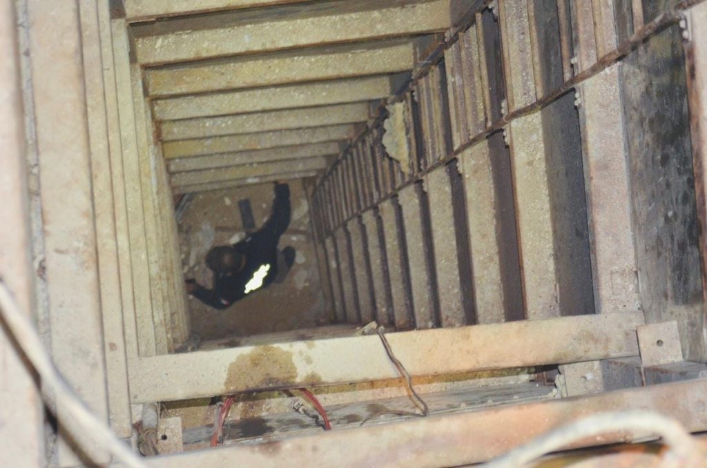 Al desahogar dicha diligencia, elementos de la PFM localizaron en el domicilio cuatro cartuchos y una tapa de acero con un sistema hidráulico que da a una excavación en forma de túnel acondicionado con rieles, luz, sistema de ventilación y una longitud de 242 metros aproximadamente.